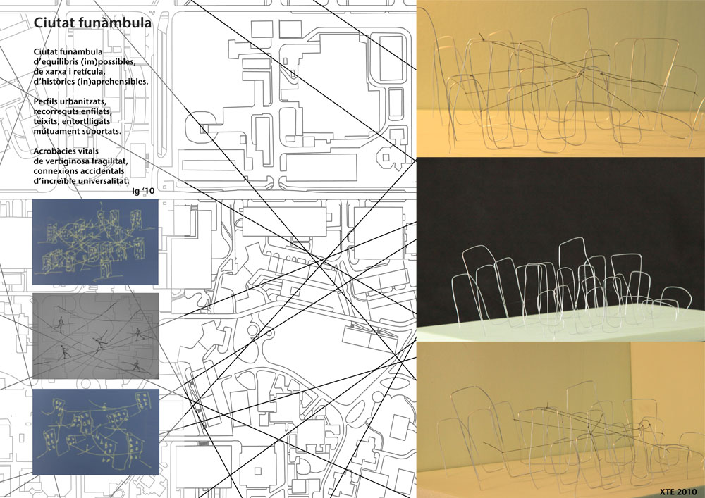 La ville comme réseau de parcours de ses habitants, qui coïncident, consciemment ou pas, et qui partagent des points de rencontre, des expériences, des attitudes et des relations en commun dans la ville. La ville c’est l’endroit où l’on pose les pieds, le reste c’est le vide, pour l’instant.